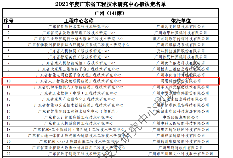 日前,广东省科技厅发布2021年度广东省工程技术研究中心名单。经过层层筛选、专家评审,依托中国·必威(bw-西汉姆联)有限公司|Official website 建设的“广东省人工智能及物联网应用工程技术研究中心”榜上有名。广东省工程技术研究中心主要依托省内行业、领域具有科技实力的、拥有一定规模以上创新型企业建设,部分依托高校和科研院所组建。工程中心旨在